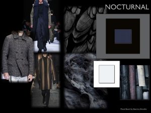Black with all its “dramatic”. Metropolitan elegance. Boiled wool, cloth, jacquard fabrics, blowing effects, quilted. Black, midnight blue, anthracite, silver, optical white.