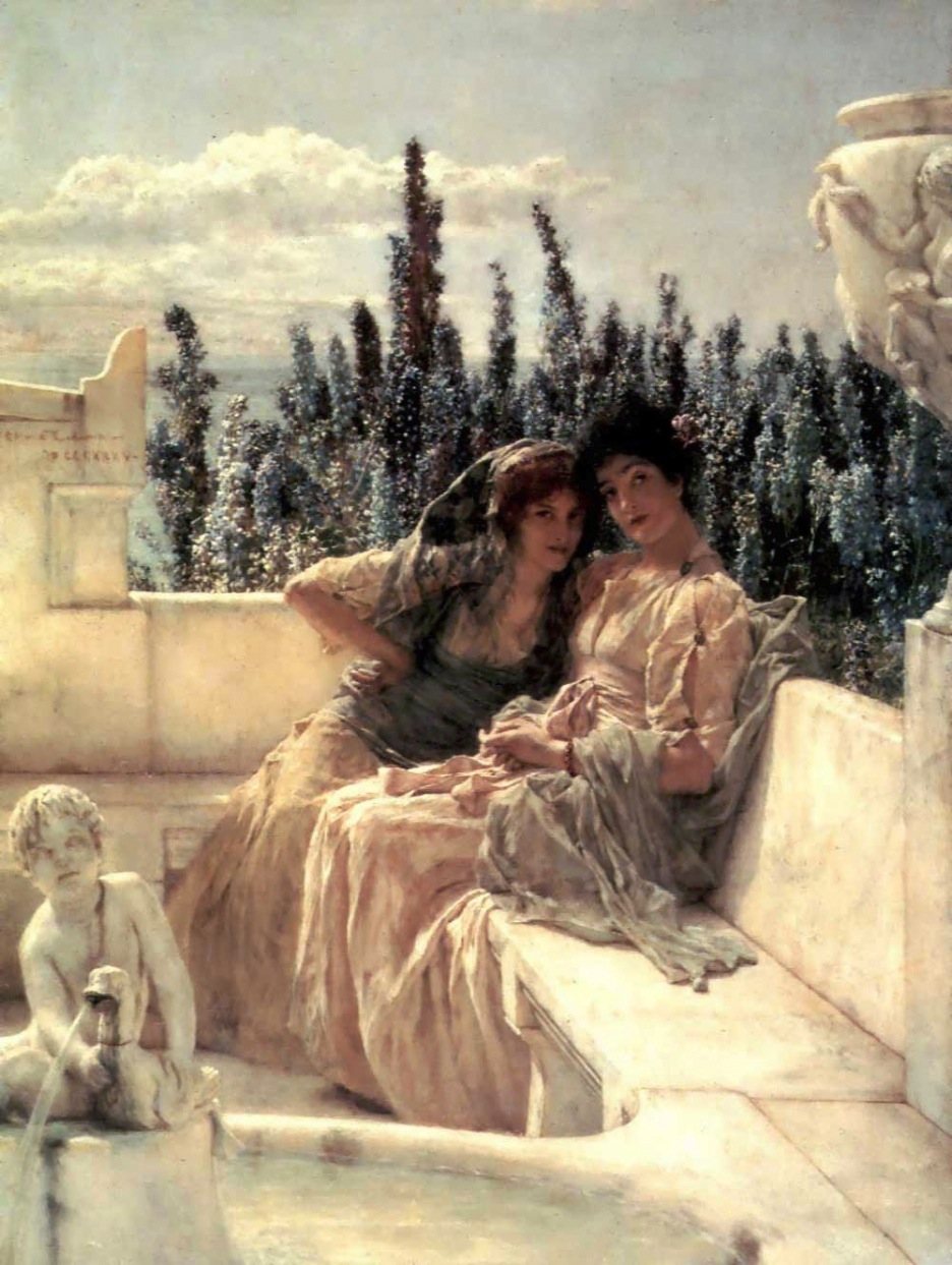 Negli ultimi anni della sua attività, Alma-Tadema si dedicherà alla rappresentazione quasi esclusiva di questi soggetti femminili, donne dalle folte capigliature, dagli occhi sognanti e innamorati, ritratte nelle splendide terrazze marmoree, con atteggiamenti sognanti ma anche sensuali.