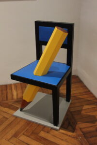 A glimpse of the Armando Testa exhibition. Cuckoo – Tetè: Chair with Pencil