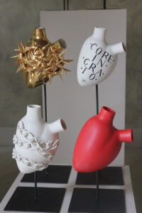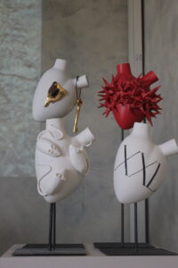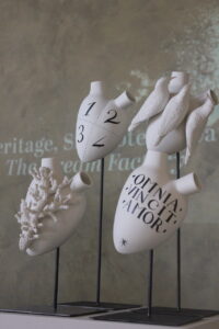 Cuori by Elica Studio, with the exhibition Italy in the Heart, 50 porcelain hearts, creative, fun, thoughtful, symbolic… Over 50 objects, part of the “In alto i cuori” collection, entirely handmade.