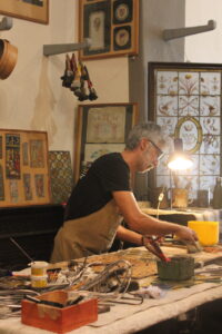 Antica Officina del vetro di Carmelo Arcofora, an artistic workshop in the heart of Florence, specializing in stained glass and the creation of Tiffany-style works. For over thirty years, he has carried on the tradition by creating and restoring leaded glass windows, also known as “lead fabrics.”