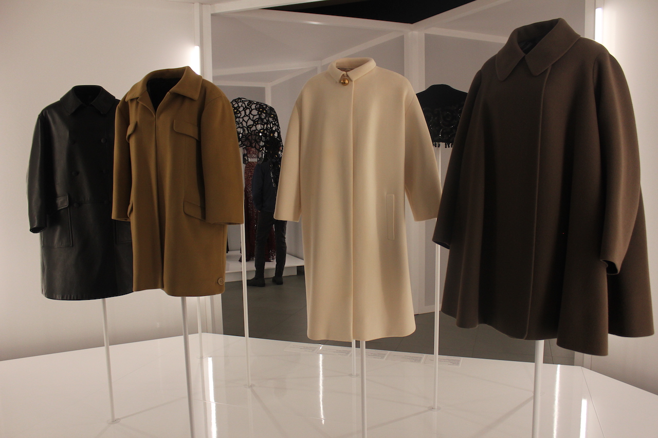 The two coats in a glimpse from the exhibition Azzedine ALAÏA, Cristóbal BALENCIAGA Sculptors of Form