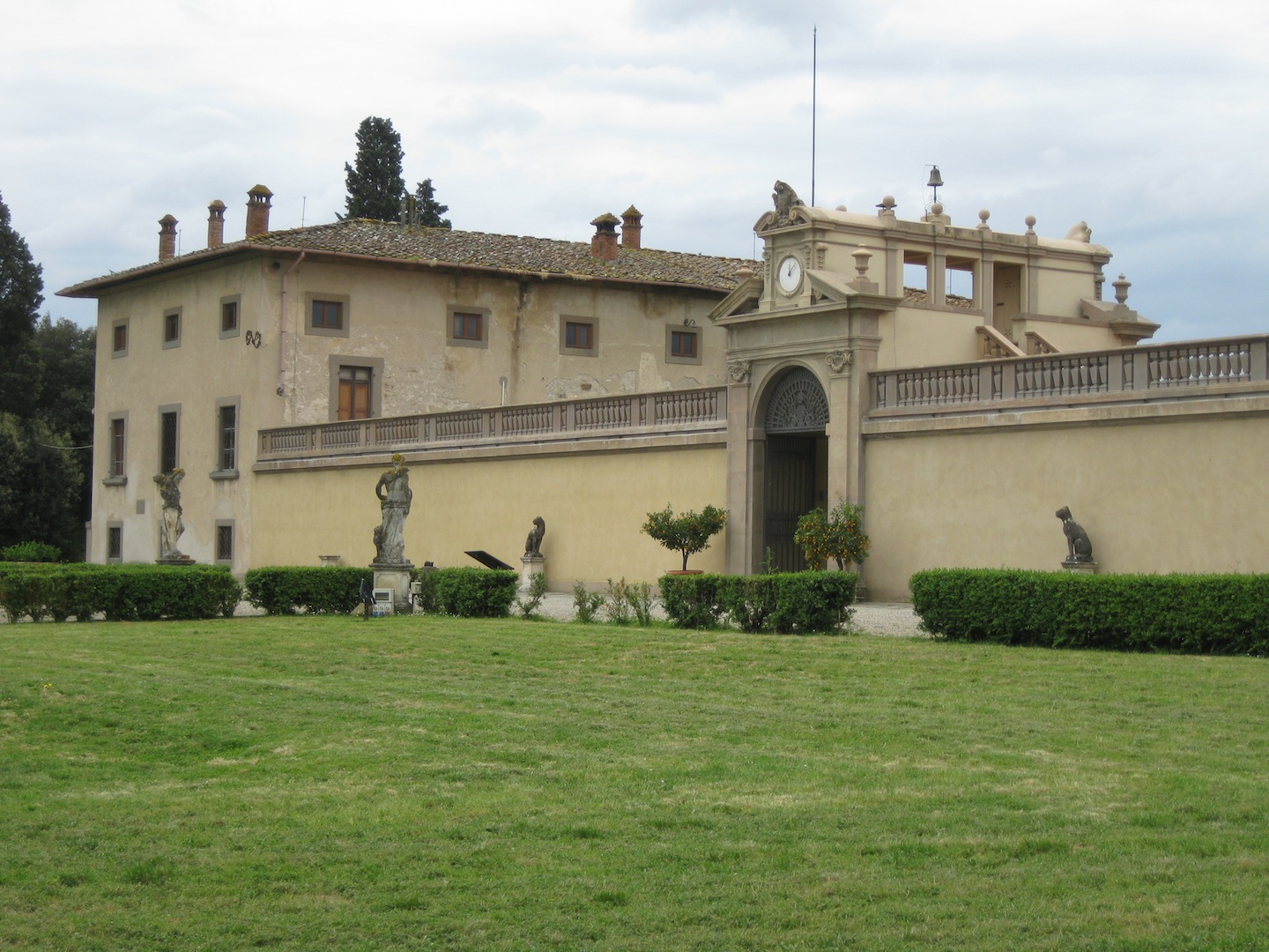 Facciata lato sinistro e giardino di Villa Bellosguardo
