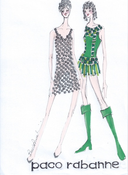 Designer of Spanish origin, he was one of the first to use unconventional materials such as paper, plastic and above all metal, already in the 1960s. His metal mesh was held together by rings, no longer with needle and thread. He was the first designer to use black models in high fashion and music as the background of his fashion shows. He desired to democratize fashion, so he used “poor” materials, and at the same time wanted shock the still conservative public. The metal mesh costume designed for Jane Fonda in the film Barbarella is very famous, as also the one made in gold foils for Françoise Hardy.