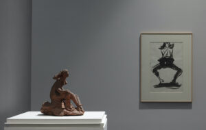 Seated young lady by Giacometti in the exhibition: Giacometti – Fontana. The search for the absolute.