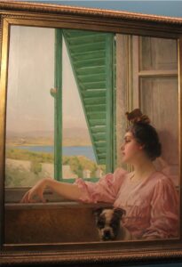 Vittorio Matteo Corcos, la figlia del pittore alla finestra, 1909. Courtesy Phidias Antiques.