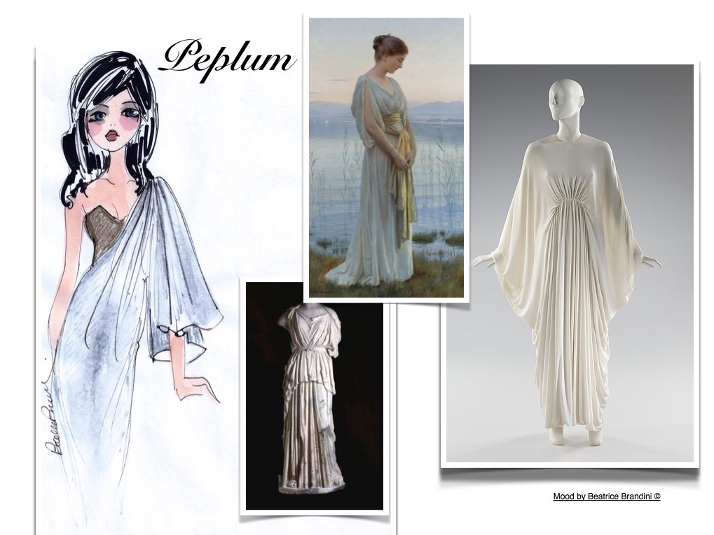 Speaking of fashion, I defined the first trend “Peplum”, starting from the Homeric tunic and arriving at couture solutions with very elegant bias cuts. Here everything is fluid, soft. Beautiful palettes, beautiful proportions. A little winged Venus, a little Vionnet.
