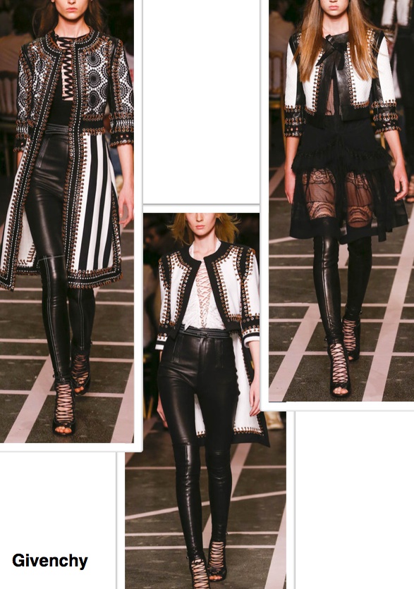 Givenchy, this collection emphasizes what are the passions of Tisci, or a sensual woman, but also a bit ‘gothic and dramatic, with a touch of fetish retrieved from high boots like a sock on the skin and the “corset”. Beautiful interpretation of the leather, in the style and workmanship, as well as the pieces in black and white with lace.