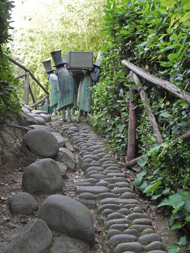 The four bunnies with the coffin and Policeman both of Carlo Consagra within the Park of Pinocchio