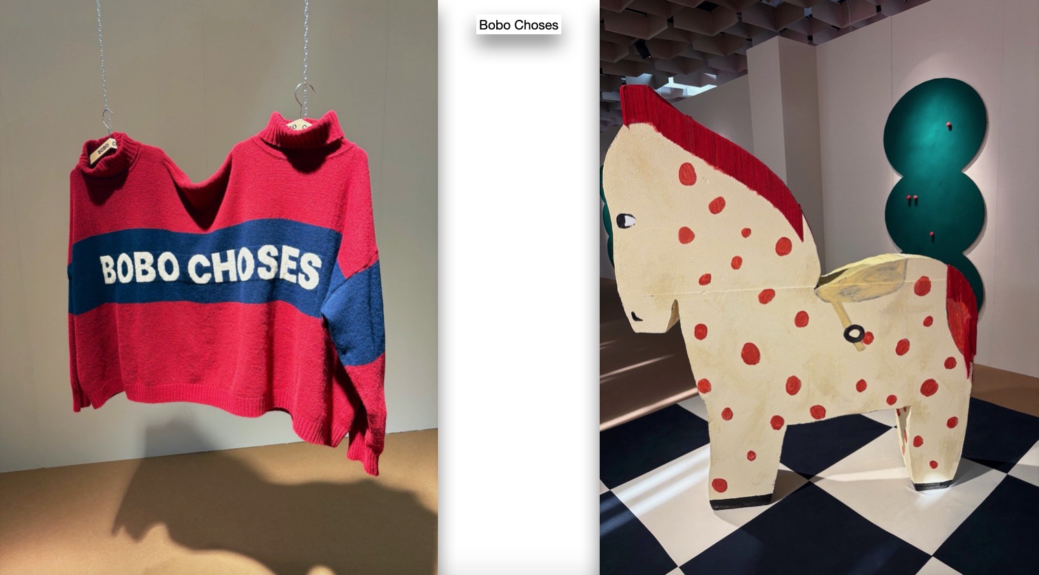 Bobo Choses brand abbastanza giovane (nato nel 2008) con l’intento di creare un abbigliamento adatto ai bambini e che parlasse il loro linguaggio. L’allestimento qui a Pitti era molto bello, divertente e moderno, creava molta curiosità, missione difficile ma che Bobo Cose ha superato a pieni voti.