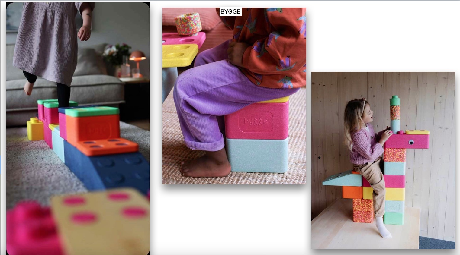 BYGGE maxi blocchi multifunzionali. Creati in Germania, sono chiaramente sicuri, ma creativi e stimolanti, con loro non si esaurisce la possibilità di inventare ed inventarsi dei mondi paralleli, caratterizzati da un’unica parola: GIOIA!