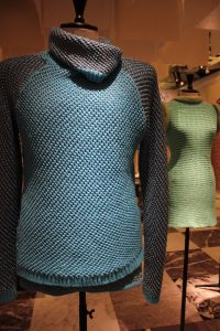 Precious: fine jewelry, the ancestral need to embellish and affirm one’s status also through the ostentation of precious jewels (in ancient times). Three-dimensional knit. Edges, necklines and slits will be emphasized by collier workmanship. Luminous surfaces moved by three-dimensional workings. Color chart inspired by the reflections of precious stones.