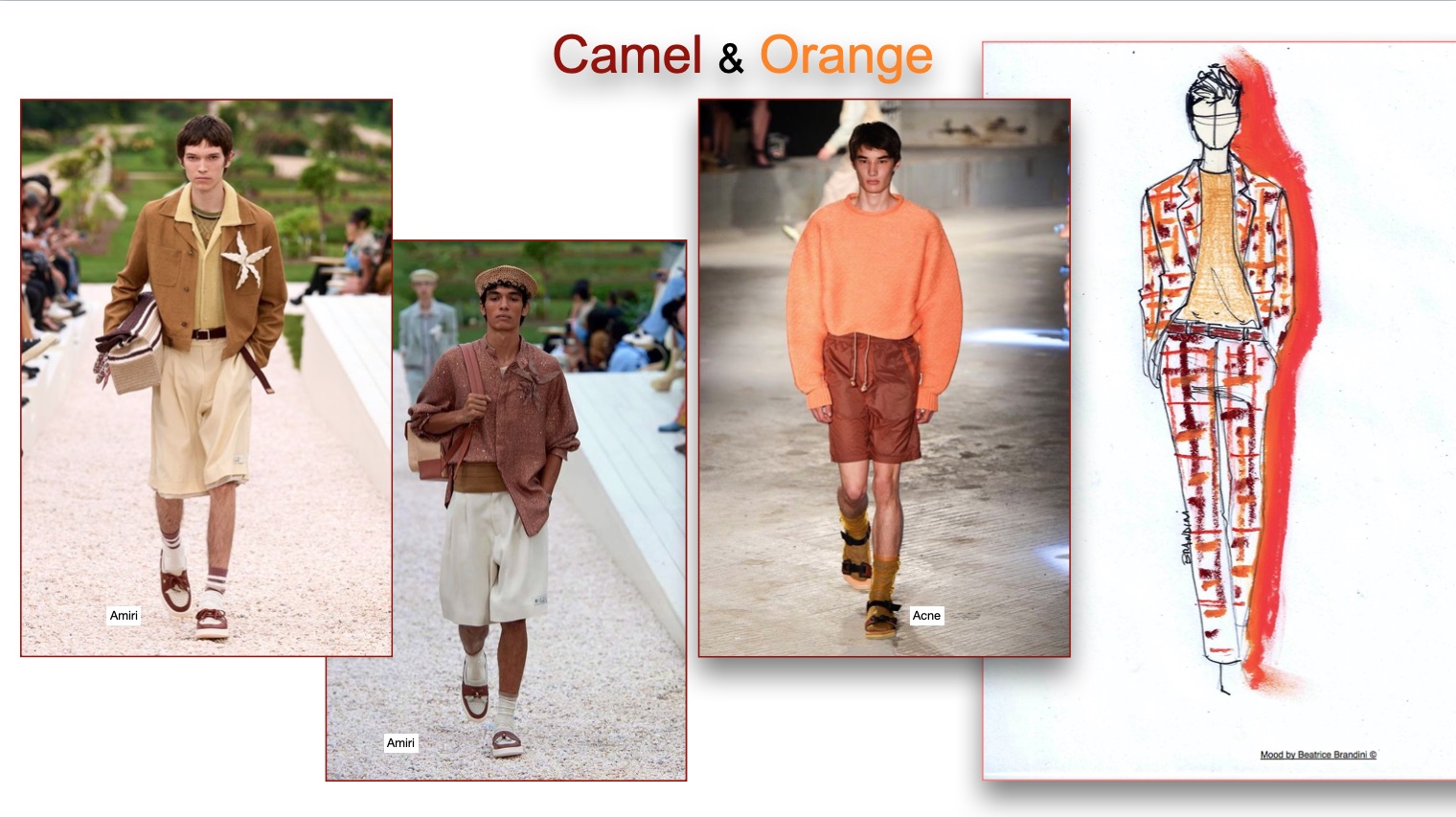 Camel & Orange – Two very beautiful shades for the summer, amazing when paired together. It can be a simple t-shirt or a very light cashmere thread sweater to create a very sophisticated ensemble. To feel like you are in Tangier even in Riccione.