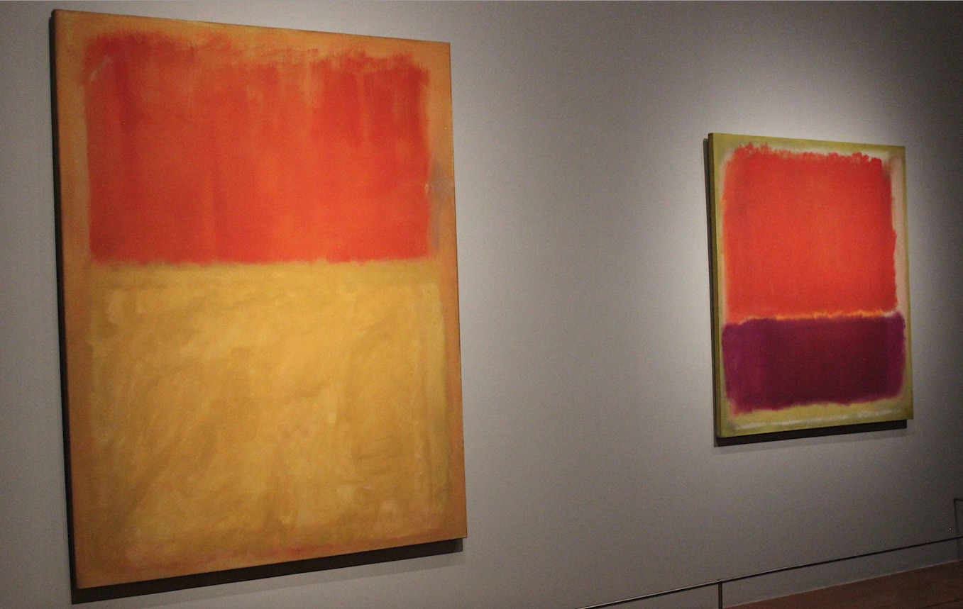 Rothko si esprime attraverso il colore, pennellate che oltrepassano la bidimensionalità della tela arrivando dritto al cuore. Sono colori fluidi, intensi, tetri ma anche vivaci, le tele, spesso monumentali, vengono interamente ricoperte di colore, escludendo ogni traccia di segno, un modo per eliminare ogni distrazione, la via per offrire a chi le ammira un’esperienza che potremmo definire spirituale.