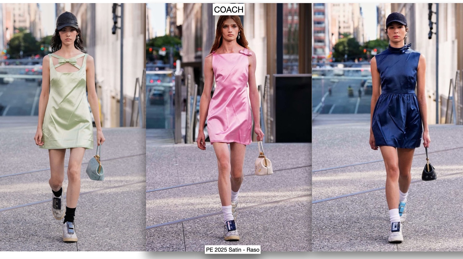 Altra tendenza importante, e questa volta si tratta di un tessuto, sarà quella del satin o raso. Moltissime le proposte “lucide” nelle passerelle di tutto il mondo. È interessante come questo tessuto, per molto tempo riservato solo ad abiti da sera ed eleganti, sia stato utilizzato anche in modo più casual e contemporaneo (Philip Lim, Coach, JW Anderson). Non mancano le belle proposte glamour, che perfettamente si adattano alla texture del satin, come quelle di Dolce & Gabbana e Balmain.