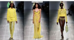 Infine ci sarà tanto colore legato ai toni caldi e vitaminici del giallo e dell’arancio. Da sempre la moda riflette il periodo storico che sta vivendo, e spesso cerca di trasmettere un messaggio positivo di fronte a tanta desolazione. Non a caso giallo, arancio, lime, sono tutte tonalità che vibrano ottimismo e felicità, armonia e libertà. Ci auguriamo di indossarle nella prossima primavera in un clima di maggiore pace e serenità.