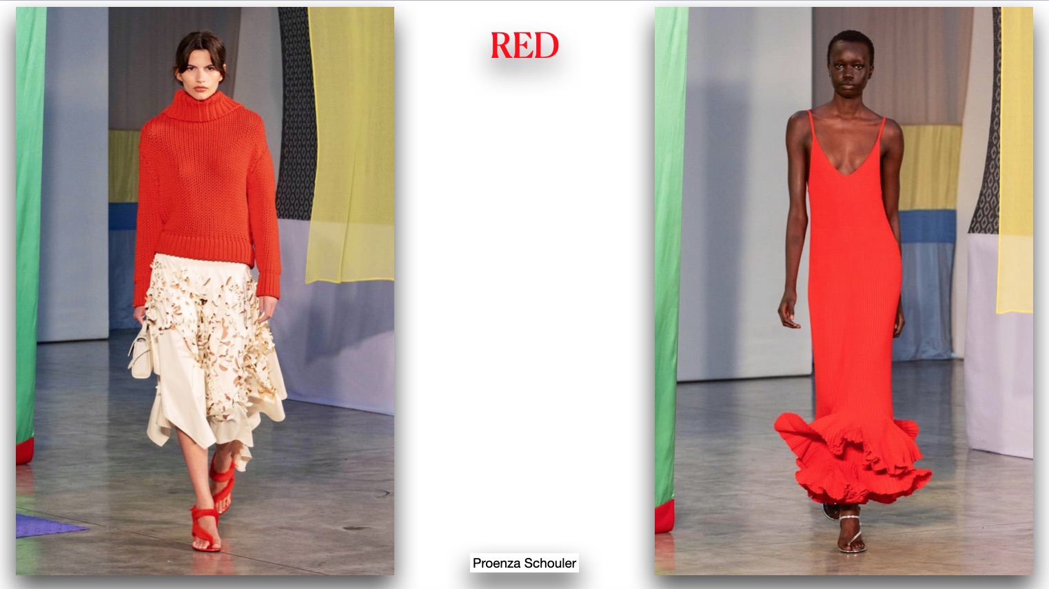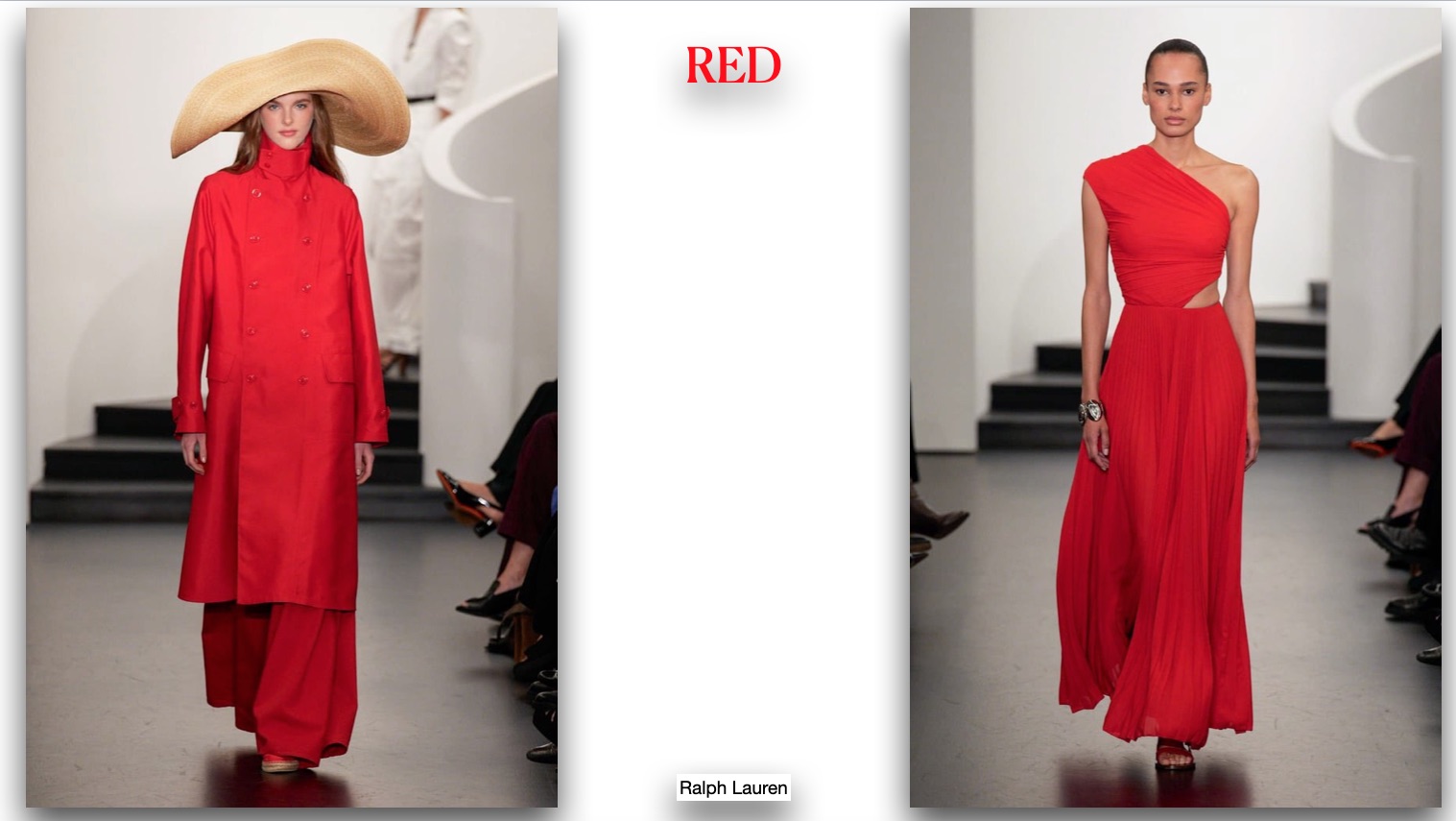La prima tendenza che propongo è quella del RED, molto presente nelle passerelle, principalmente “classico”, ovvero il rosso Valentino o Ferrari, con qualche piccola inclinazione sull’arancio. Vitaminico ed estivo, bello totale, ma anche abbinato al bianco o al denim. Meraviglioso quello proposto da Ralph Lauren, divertente da Chanel (finalmente!).
